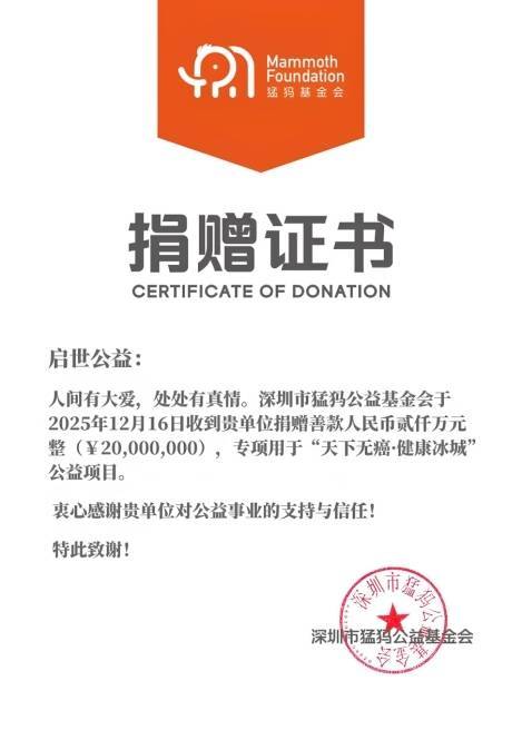 2025年12月,致力于科技创新与公益融合的启世计划宣布向“天下无癌·健康冰城”公益项目捐赠2000万元人民币,助力哈尔滨及周边地区肠癌患者的精准医疗筛查和公益救助工作。此次重磅捐赠不仅彰显了启世计划践行社会责任的坚定决心,也为基因科技赋能健康公益树立了典范。